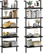 Ladder Shelf 2PCS Open Bookshelf 5-Tier Wood Wall-Mounted Black Bookcase - Black Wood is backordered and will ship as soon as it is back in stock.