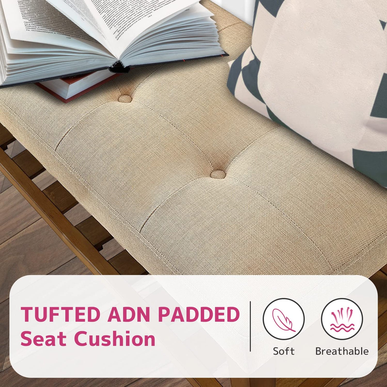 Charla Bench in Beige and Oak - Beige & Oak is backordered and will ship as soon as it is back in stock.