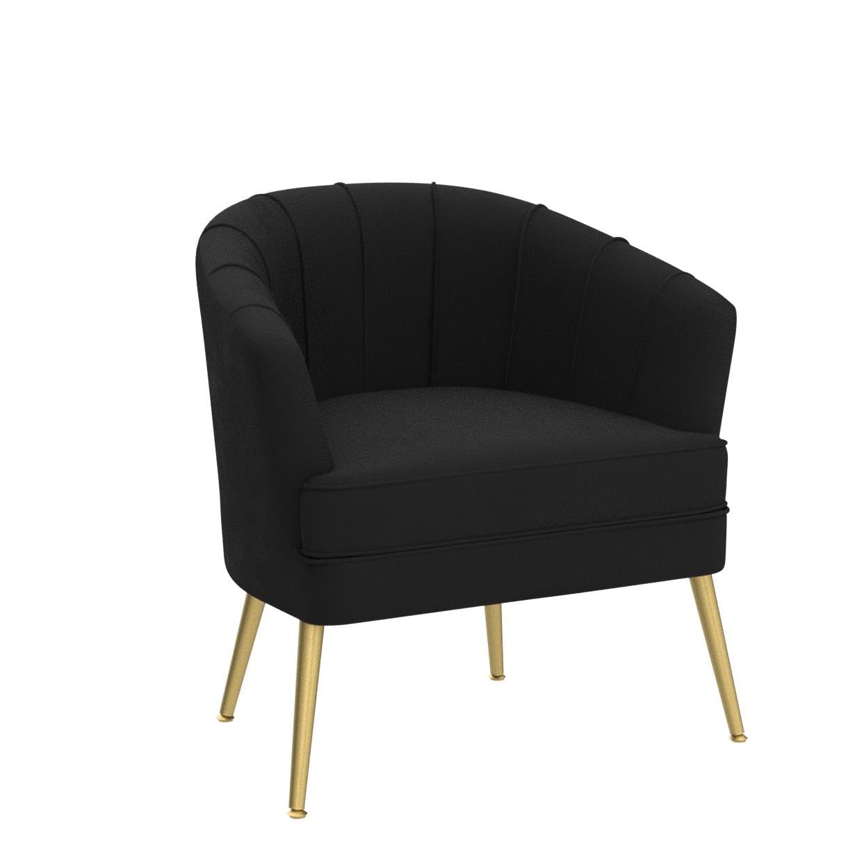 Upholstered Modern Single Sofa Side Chair,Comfy Barrel Club Living Room Armchair with Golden Metal Legs for Bedroom Living Reading Room Office, Black