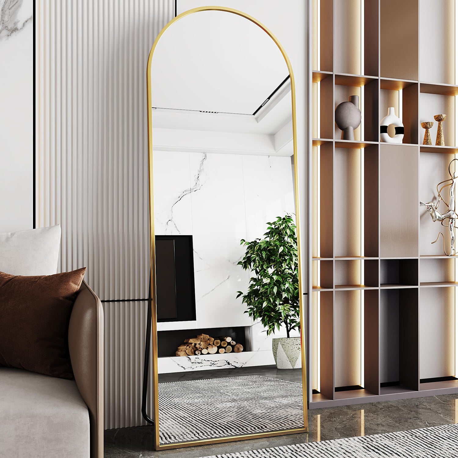 - The full length mirror with stand has an arched top.The gold arched mirror full length is embedded in a high-quality and durable aluminum alloy frame,The noble metal texture paired withu ltra-thin glass lenses looks very classy, and even more worthy of your noble temperament. I believe that every beauty lover really wants to own it