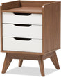 Maddy Mid-Century Modern Wood 3-Drawer Storage Nightstand, White/Walnut Brown
