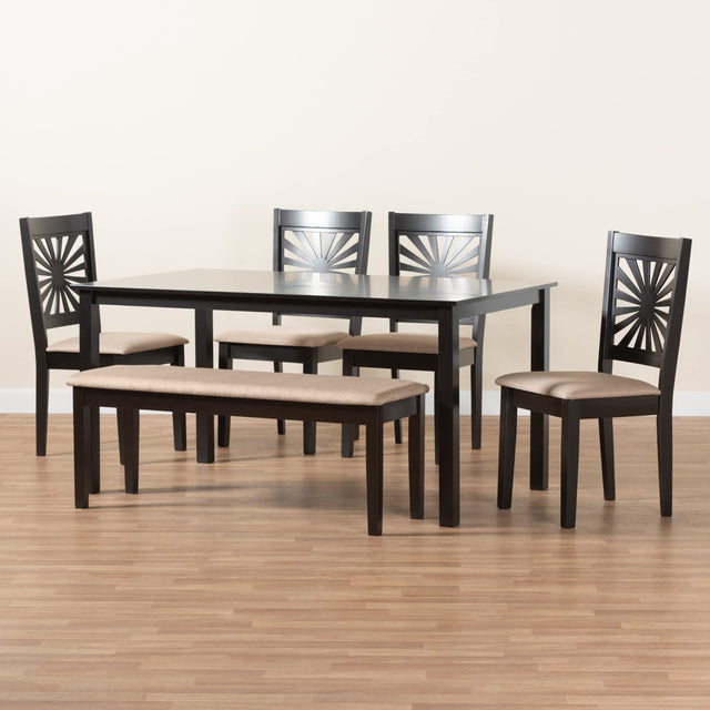 • Baxton Studio Olympia Modern Beige Fabric and Espresso Brown Finished Wood 6-Piece Dining Set
