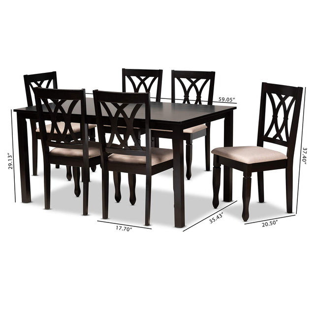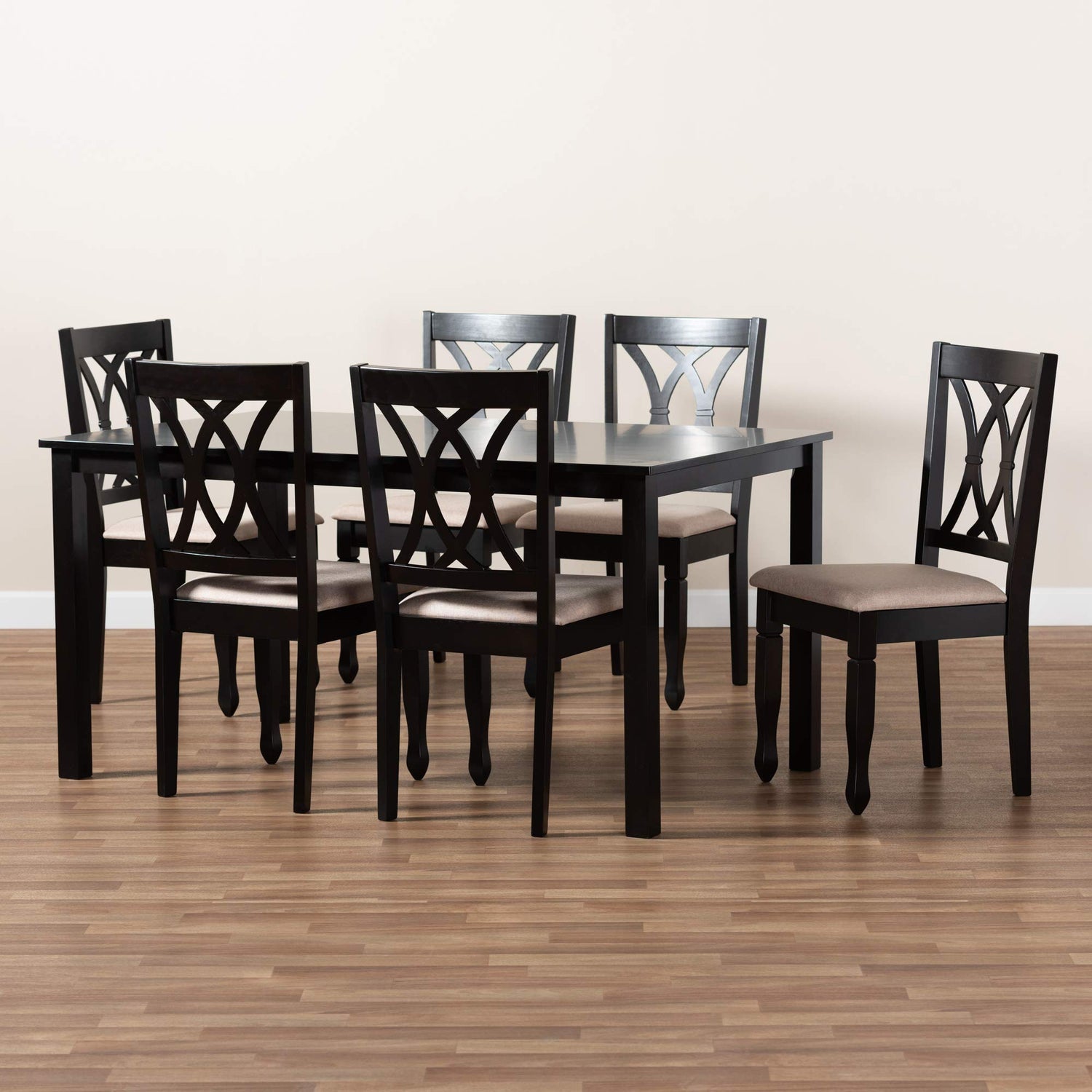 a Dining Set and Dining Set Sand Fabric Upholstered Espresso Brown Finished Wood - Dining Set is backordered and will ship as soon as it is back in stock.