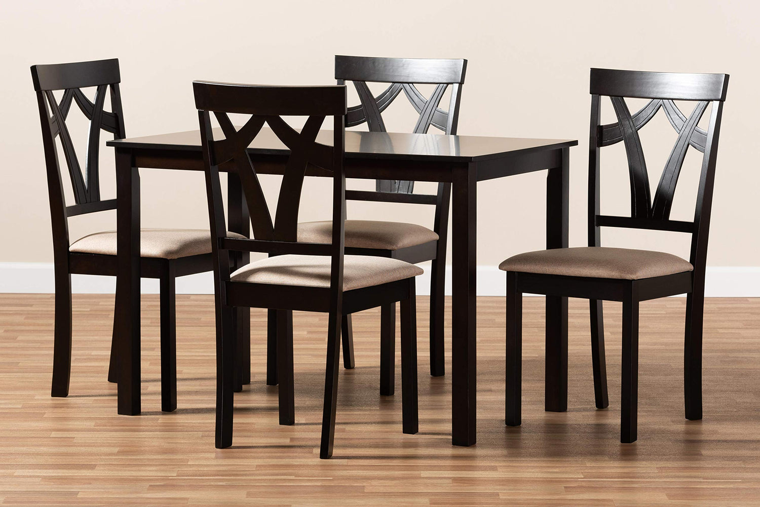 Sylvia Dining Set and Dining Set Espresso Brown Finished and Sand Fabric Upholstered