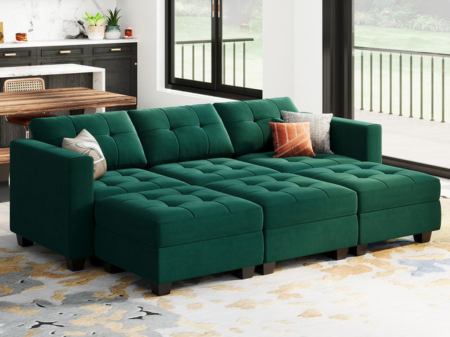 • Pet Friendly& Easy to clean: This sofa is made of velvet fabric, which is not only soft and breathable, but also gives you a skin-friendly experience. It's also easy to clean and pet friendly.The pet's hair mostly sits on modular sectional sofa’s top so you can easily pick off the clumps or run a lint roller over it every few days to keep it clean