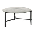 Zuko 36 Inch Round Coffee Table, Faux Marble Design, Interlocked Legs, White, Black