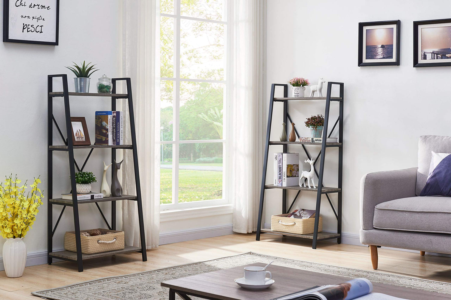 - Decorate Any Room: Simple and clean design of this ladder shelf bookcase add an industrial ambience to any space, making it the perfect addition to your home, office, restaurant, cafƩ, etc.