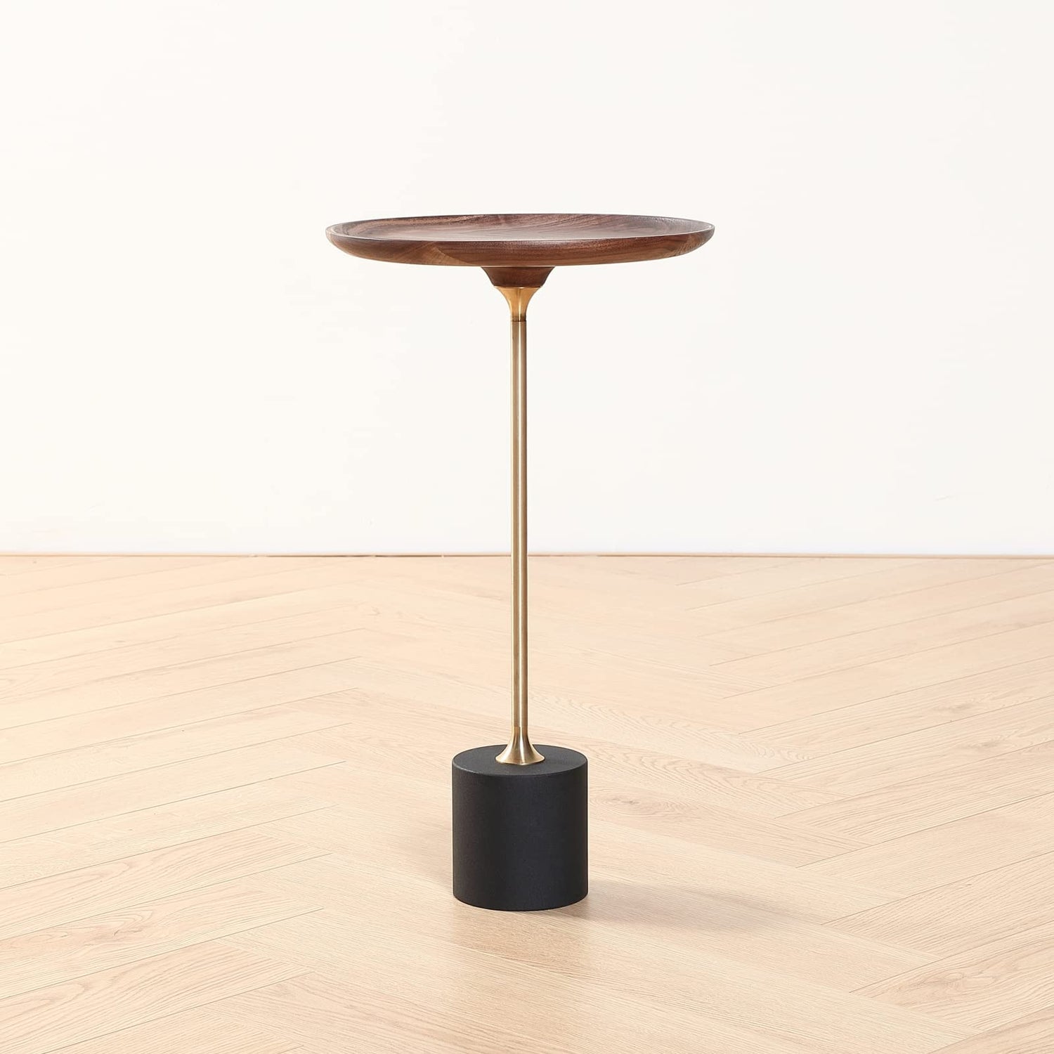 • Crafted with premium materials, the base of this tiny side table is made of high-density carbon steel, while the central support component is made of solid brass. The tabletop is elegantly crafted from solid walnut wood, adding exquisite elegance to your space.