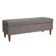 - A cozy and functional fabric upholstered bench with a brown color and a hidden storage compartment