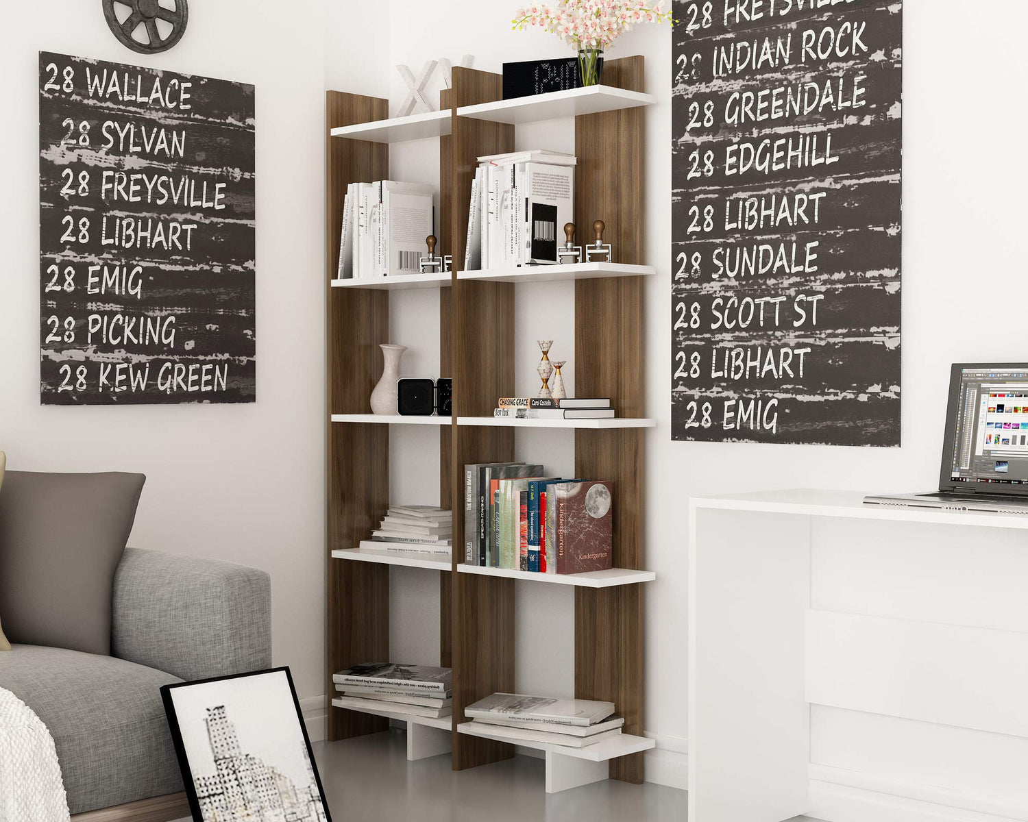 AL67BCB02 67 x 18 x 9 in. Alice Accent Corner Unit Bookcase - Walnut - 67 x 18 x 9 is backordered and will ship as soon as it is back in stock.