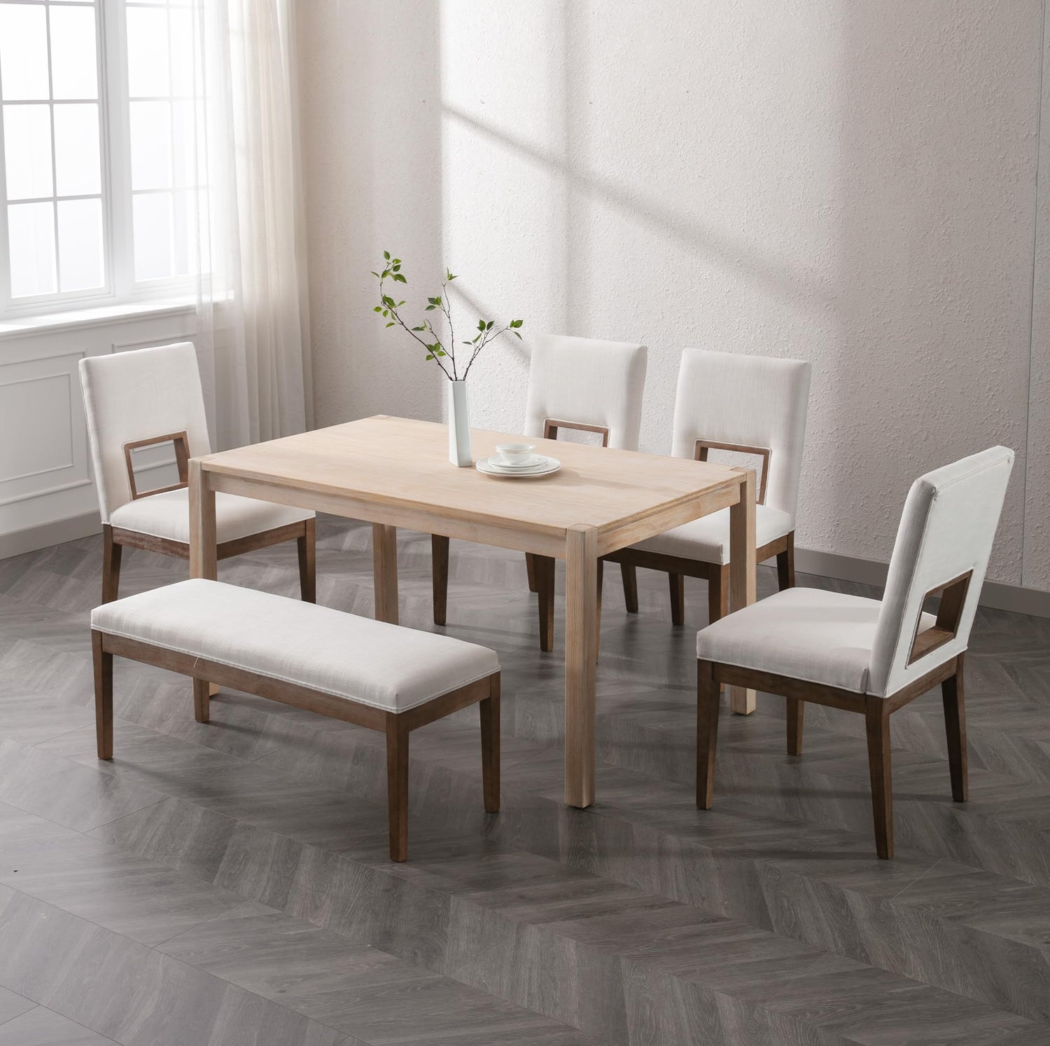 Linen Dining Bench Upholstered Entryway Bench Farmhouse Shoe Bench