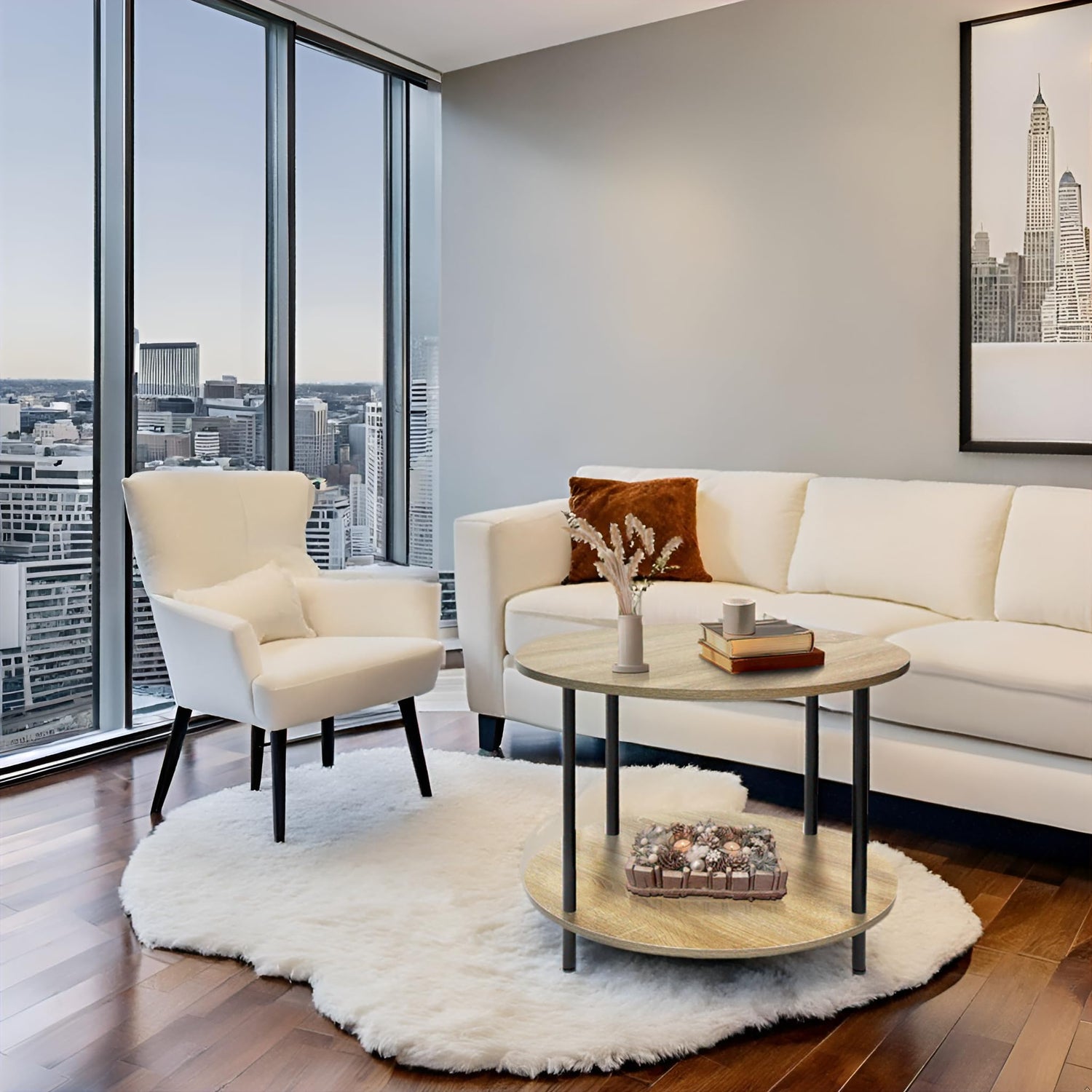 - Â This 2-Tier round coffee table features a bottom integrated steel tube reinforcement design, providing enhanced stability and support. The robust construction ensures that coffee table round remains steady even under heavy use, making it a reliable centerpiece for your living room