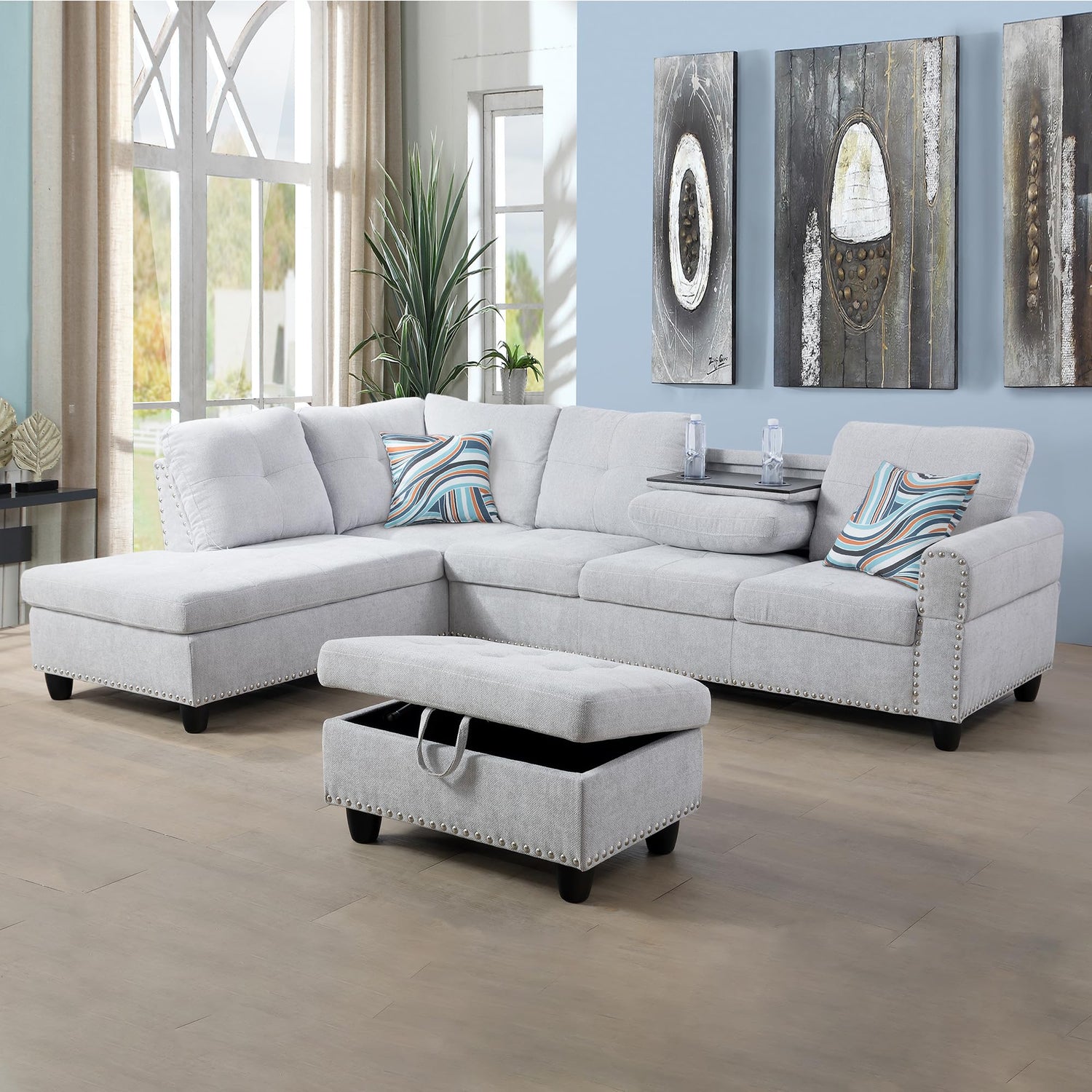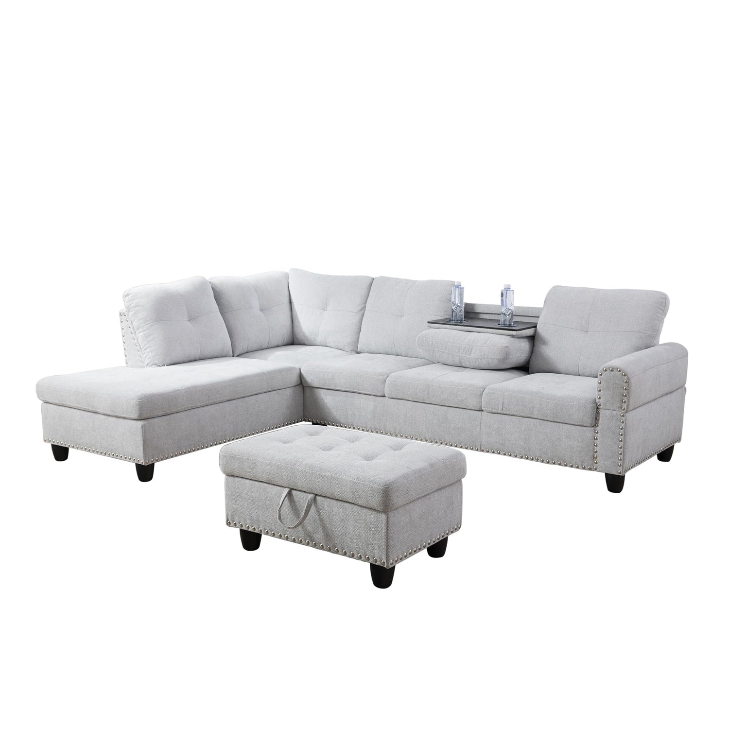 L Shaped Sectional Sofa Set with Storage Ottoman, Left Facing Chaise Longue,