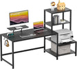 Office Desk 58 inch with Printer Shelf, Reversible Computer Desk with Movable Monitor
