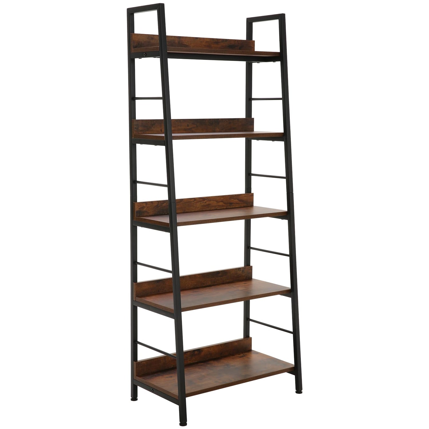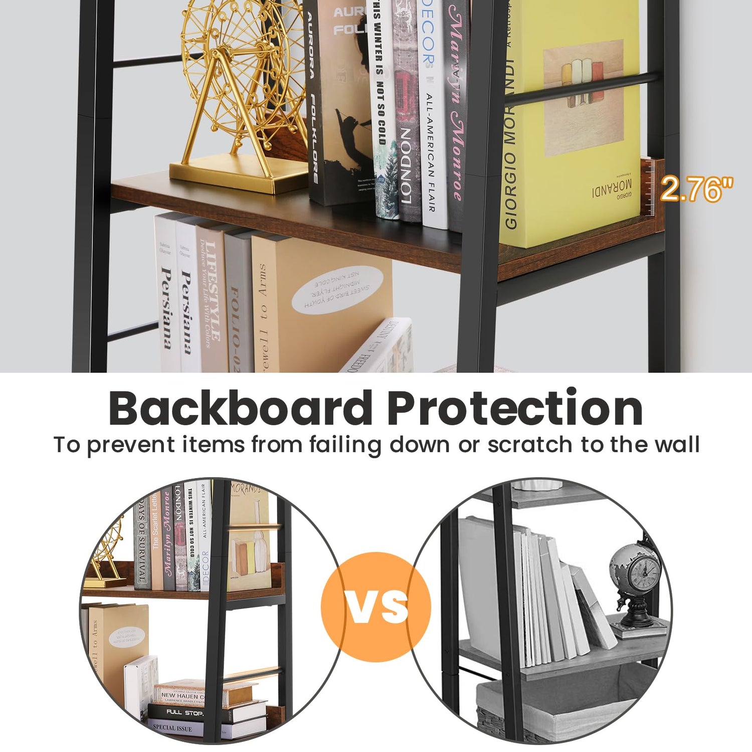 - 【5-Tier Large Storage Capacity Bookshelf】: Vintage ladder shelf provides ample space while making full use of the limited space, perfect for storing any items you want to collect and display.It can serve as bookshelf, ladder shelf, plant stand, Storage rack and etc.