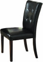 - Button-Tufted seat with stitching upholstered in durable and easy-to-clean dark brown faux leather/bi-cast vinyl with high quality foam
