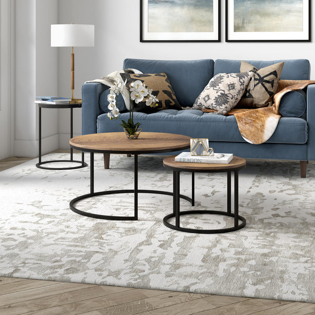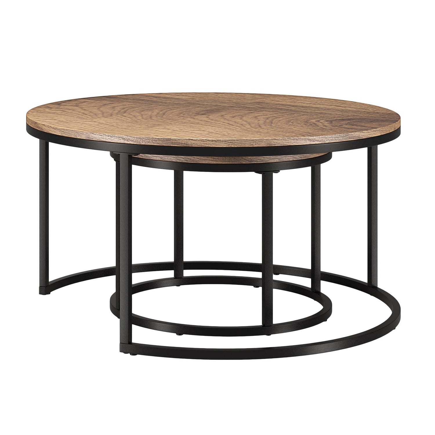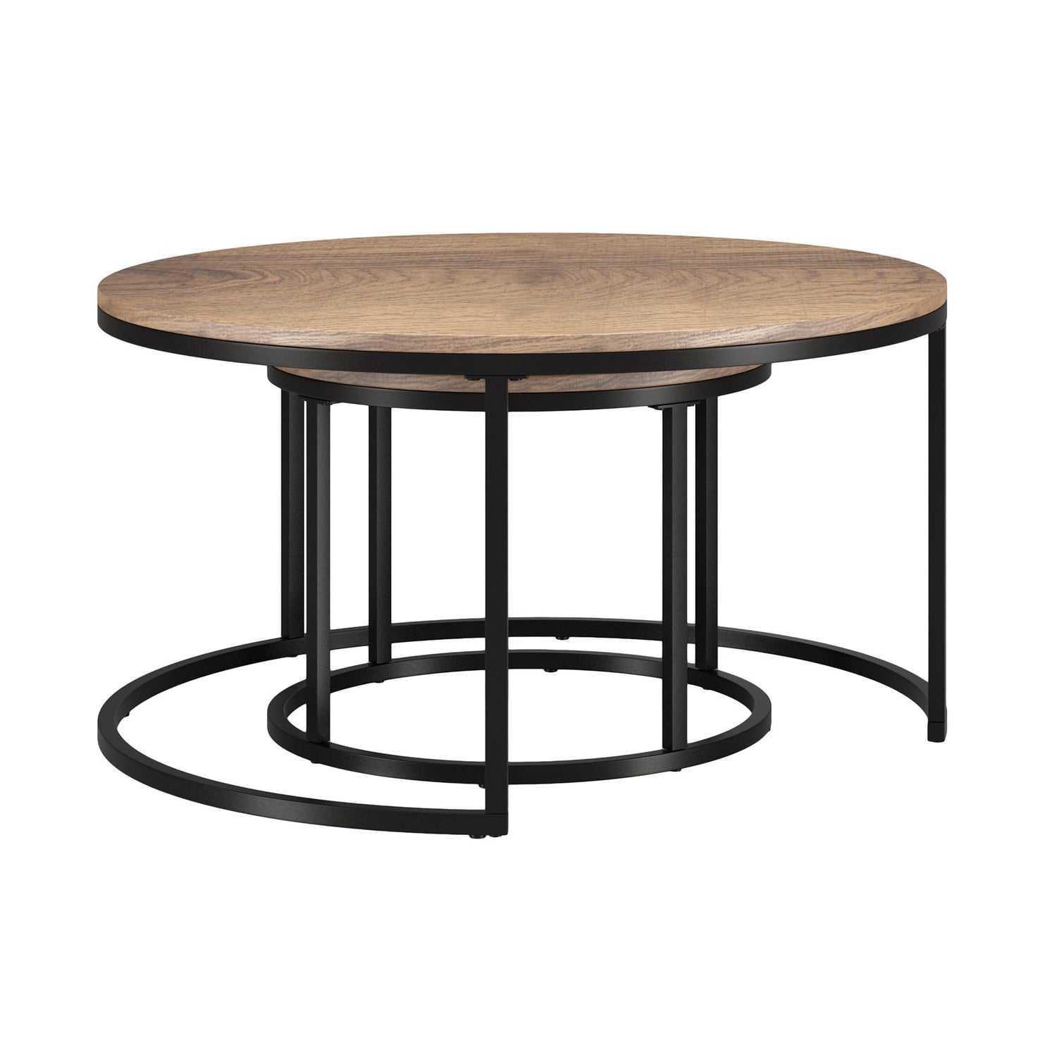 Set of Two 35" Black and Brown Round Nested Coffee Tables - Black is backordered and will ship as soon as it is back in stock.