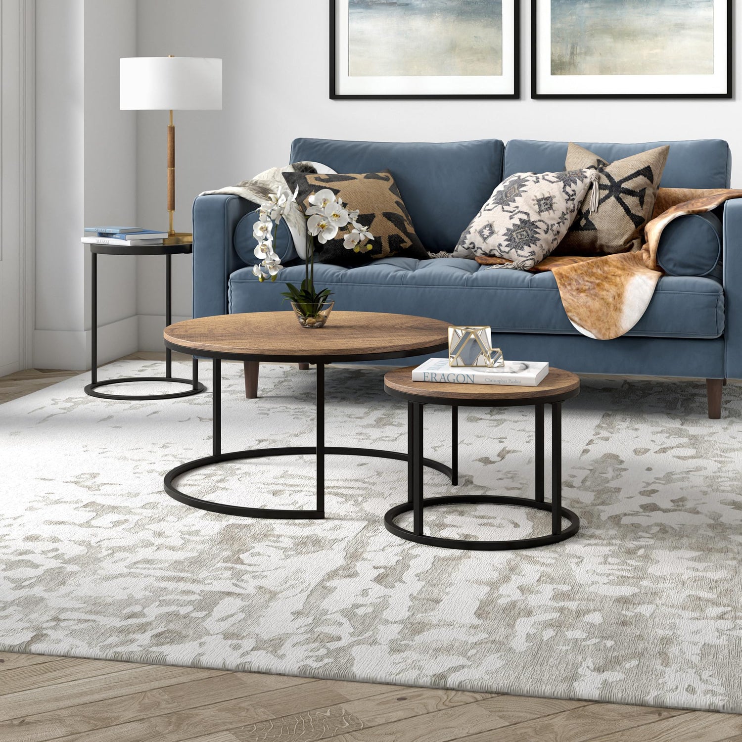 - Set of 2 Modern Mixed Material Metal and MDF Wood Look Nesting Coffee Tables.