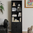 - Abundant Storage Space: The shelf consists of 4 open shelves and 1 hidden space in the cabinet door, which can be used to place artworks, books, pictures and other items. It can be used not only as a bookshelf, but also as a display cabinet, filing cabinet and storage cabinet.