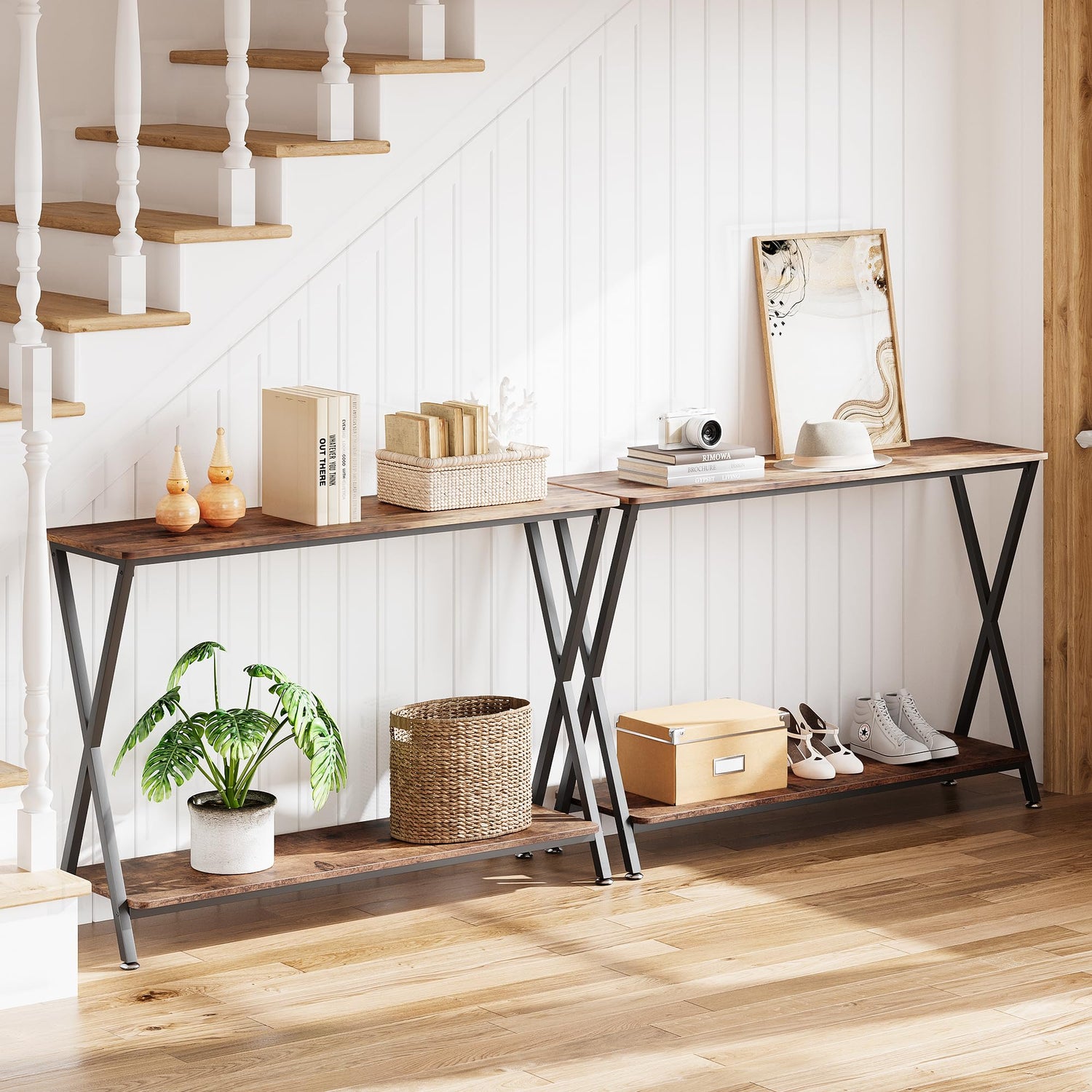 Small Entryway Table, Narrow Hallway Table, 2-Tier Industrial Display Table