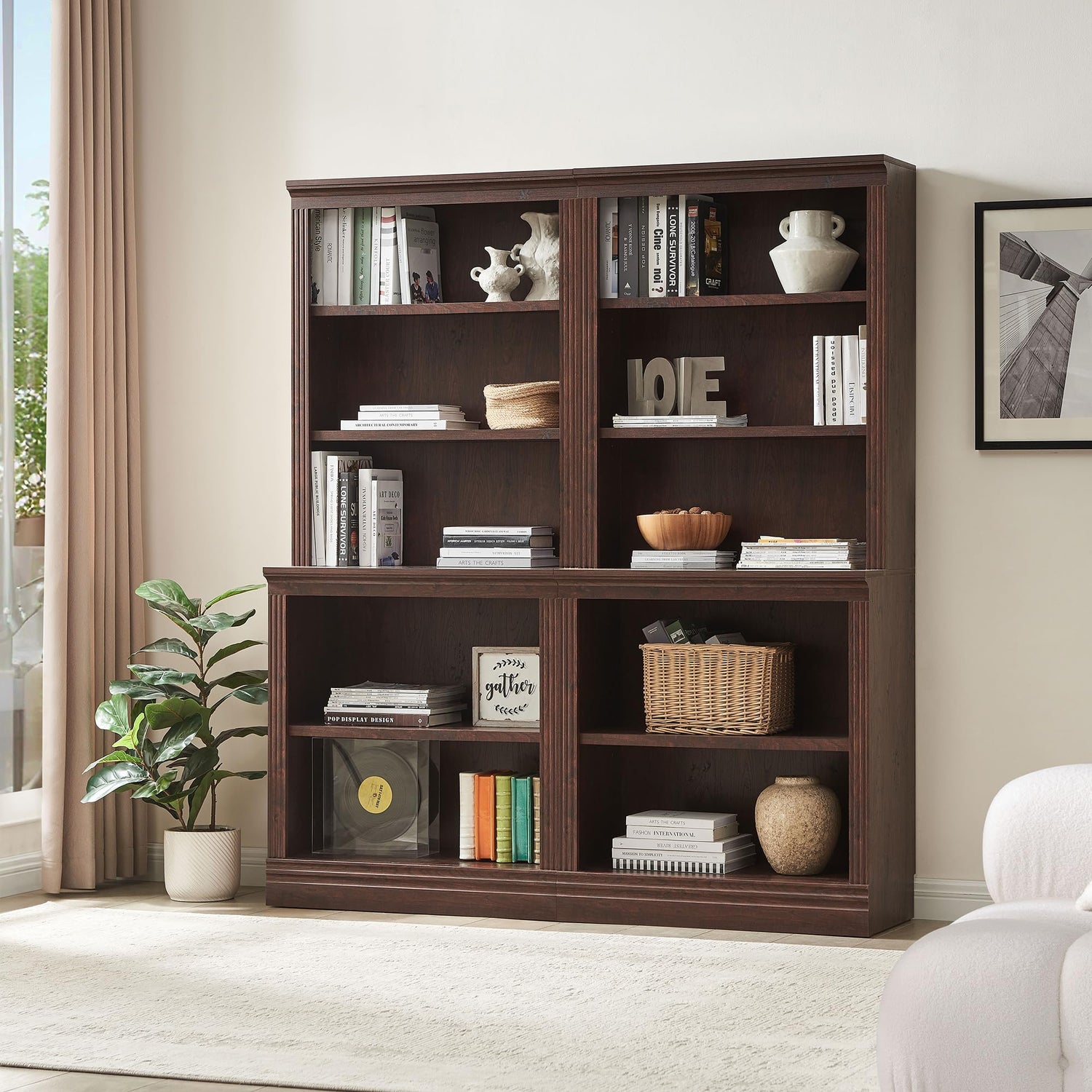 - Our modular bookcase systems are designed to seamlessly integrate together with any of our narrow, standard, or multi-depth bookcase units, allowing for complete customization of your living space. Mix and match various sizes to create a captivating aesthetic that showcases your cherished pictures, decorations, and achievements to all your friends and family.