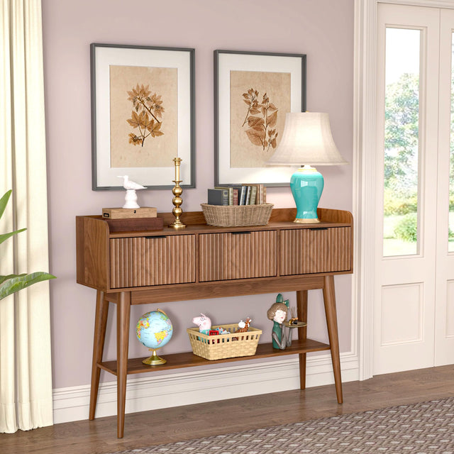 Narrow Console Table Entryway Sofa Table with 3 Drawers Fluted Console Table