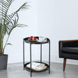 Patio Side Table 2-Tier, Outdoor Side Table Waterproof Round Metal Steel Side Table