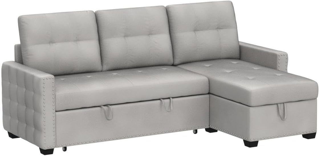 76.8'' Pull Out Sleeper Reversible Sectional Storage Sofa Bed, Convertible Velvet Corner Sofa Bed and Reversible