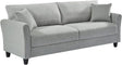 - Â The length of the living room sofa is 85 inches, spacious enough to accommodate 3 persons. Foam-fill upholstery back and super thick padded seat cushion will bring you a comfortable sitting experience while toss pillows will be an additional source of comfort.
