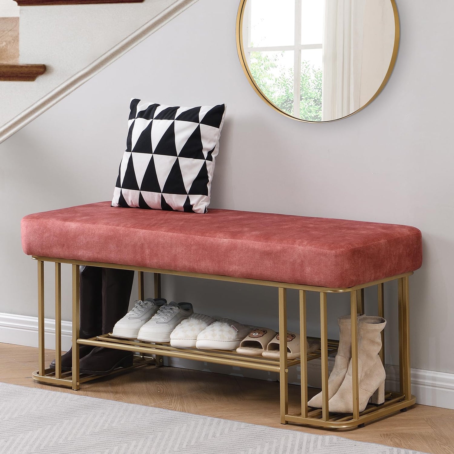 - UPHOLSTERED VELVET BENCH Made with high-quality velvet and a 5.12IN thick cushion, this entry bench offers both durability and comfort.