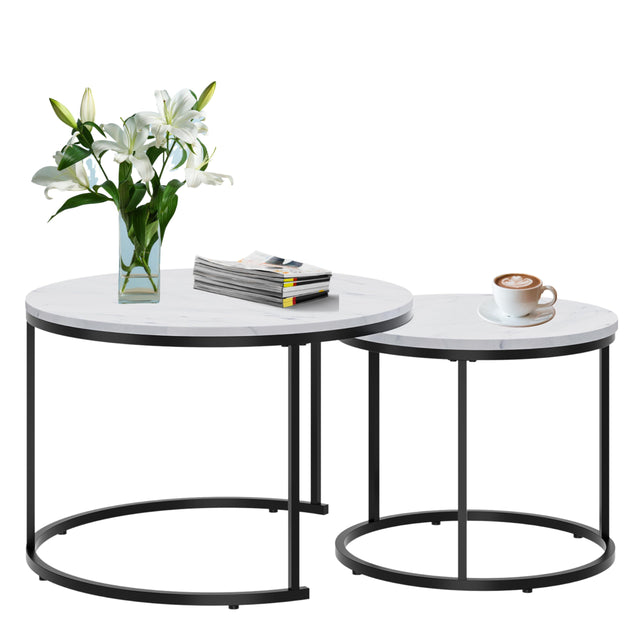 Nesting Coffee Table Set of 2, 27 inch Round Faux Marble Coffee Tables, Modern Nesting Tables