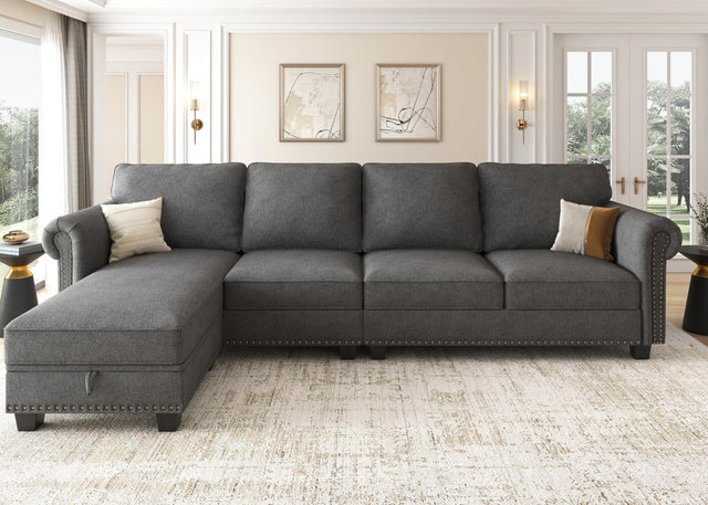 - Modern sectional American style rolled armrest, nailhead design and high-end fabric make the sectional modern and beautiful. You can show your sofa proudly at any angle in front of your friends