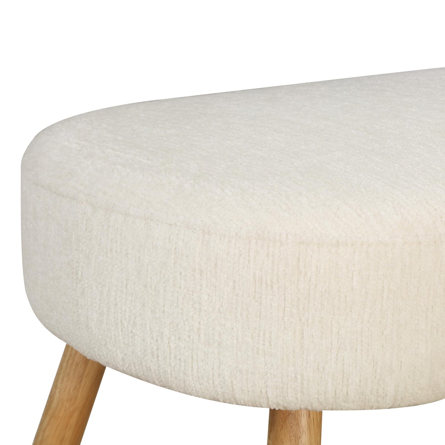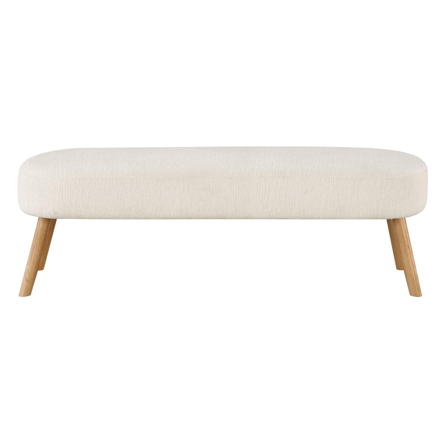 Cameron Contemporary Padded Bench with Natural Legs, White Fabric
