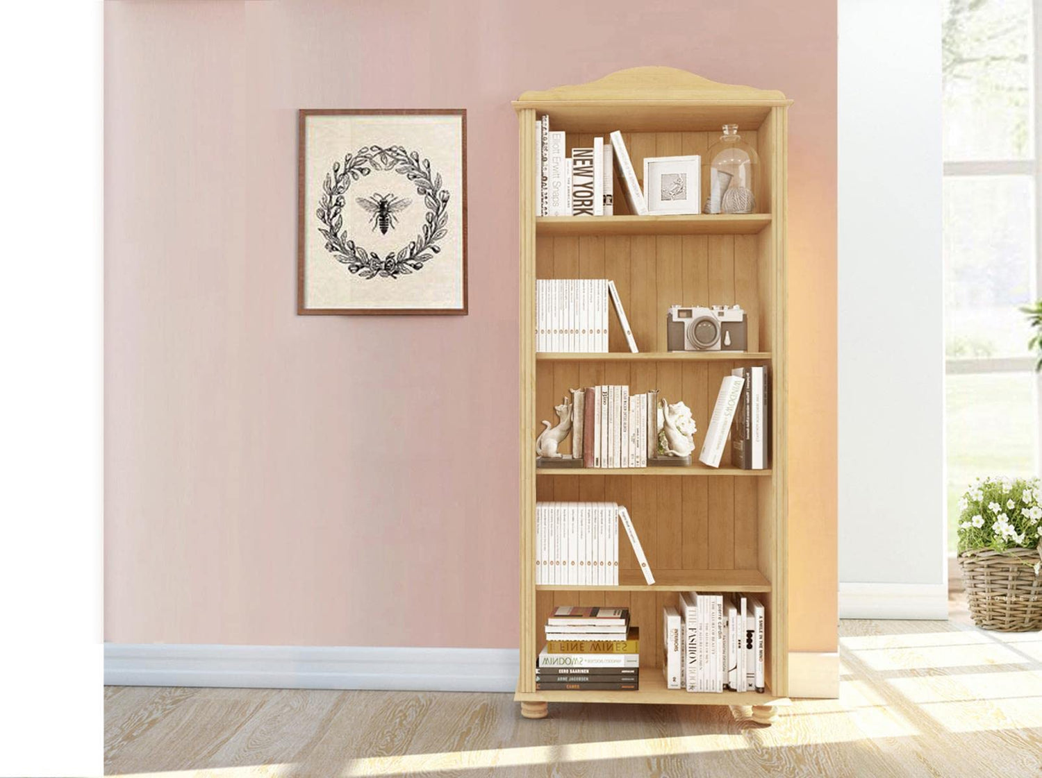 Details: Beautiful eye-catcher with natural charm! This classic natural bookshelf scores with a tasteful design and ample storage space. Several open compartments on solid shelves offer ample space for books, crockery or pretty decorative arrangements. A beautifully curved frame and decorative wooden feet round off the successful appearance of the attractive wall shelf. Regarding the coloring and processing of the high-quality furniture, there are various variants to choose from, so that personal preferences and the existing interior can be optimally considered. The solid wood used stands out with its individual structure and visually appealing grain. The home office shelf can be optimally integrated into a wide variety of living styles and is able to create a classic ambience. Additionally, the bookcase can be assembled without the arched top trim, furthering your design possibilities.
