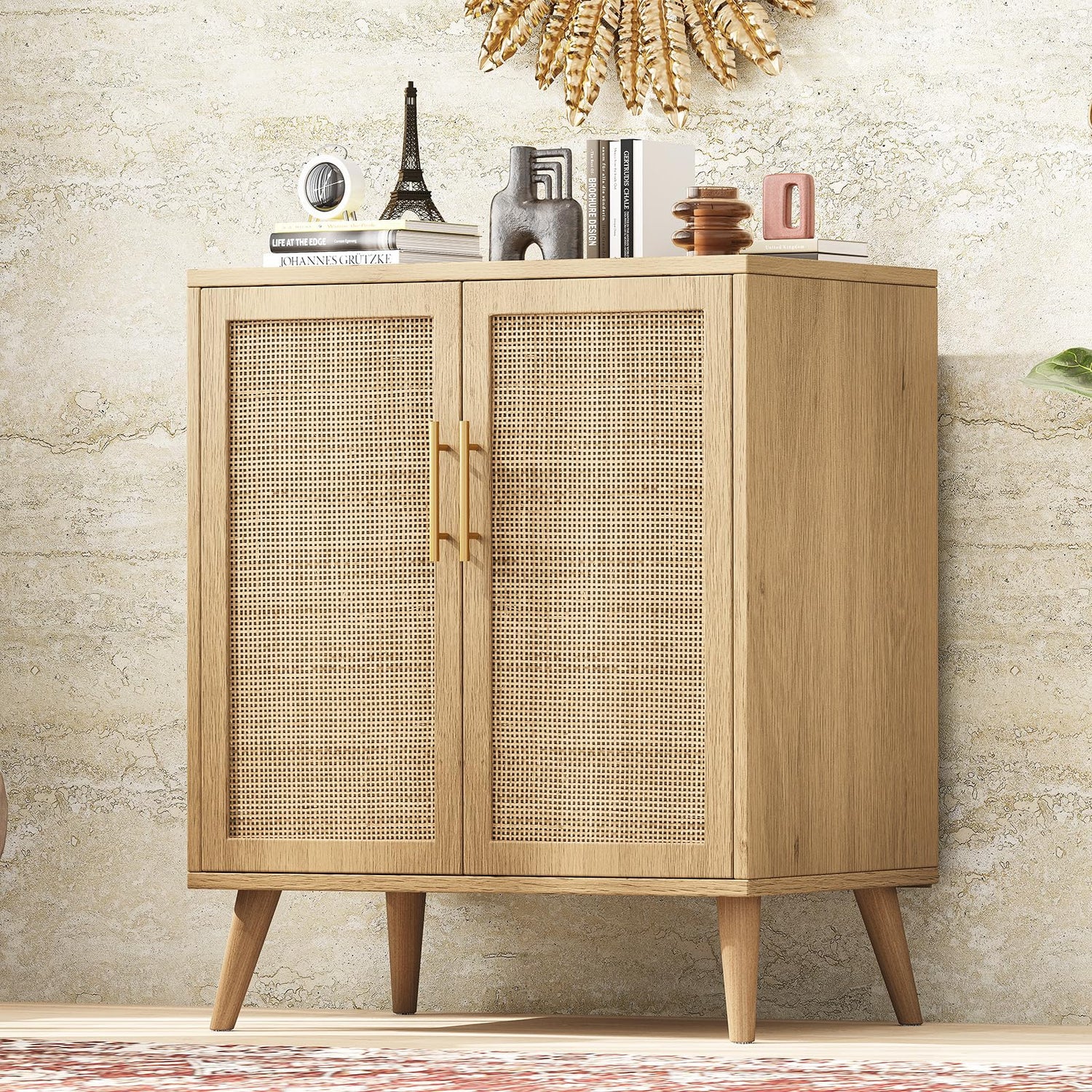 • Multifuctional Rattan Cabinet: This rattan cabinet with doors in simple style and wooden grains make it matching well with other furniture in your home. You can use the sideboard buffet cabinet as TV console table, entryway cabinet, kitchen storage cabinet, bar cabinet, etc. Whether you're using it in your dining room, hallway, or living room, this cabinet is sure to impress.