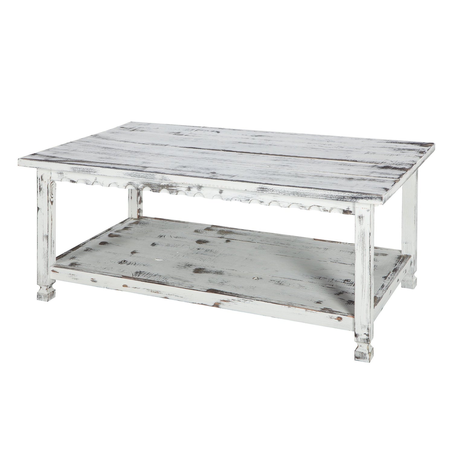 Rustic Rectangular Coffee Table w/1 Shelf in Distressed White Antique Finish