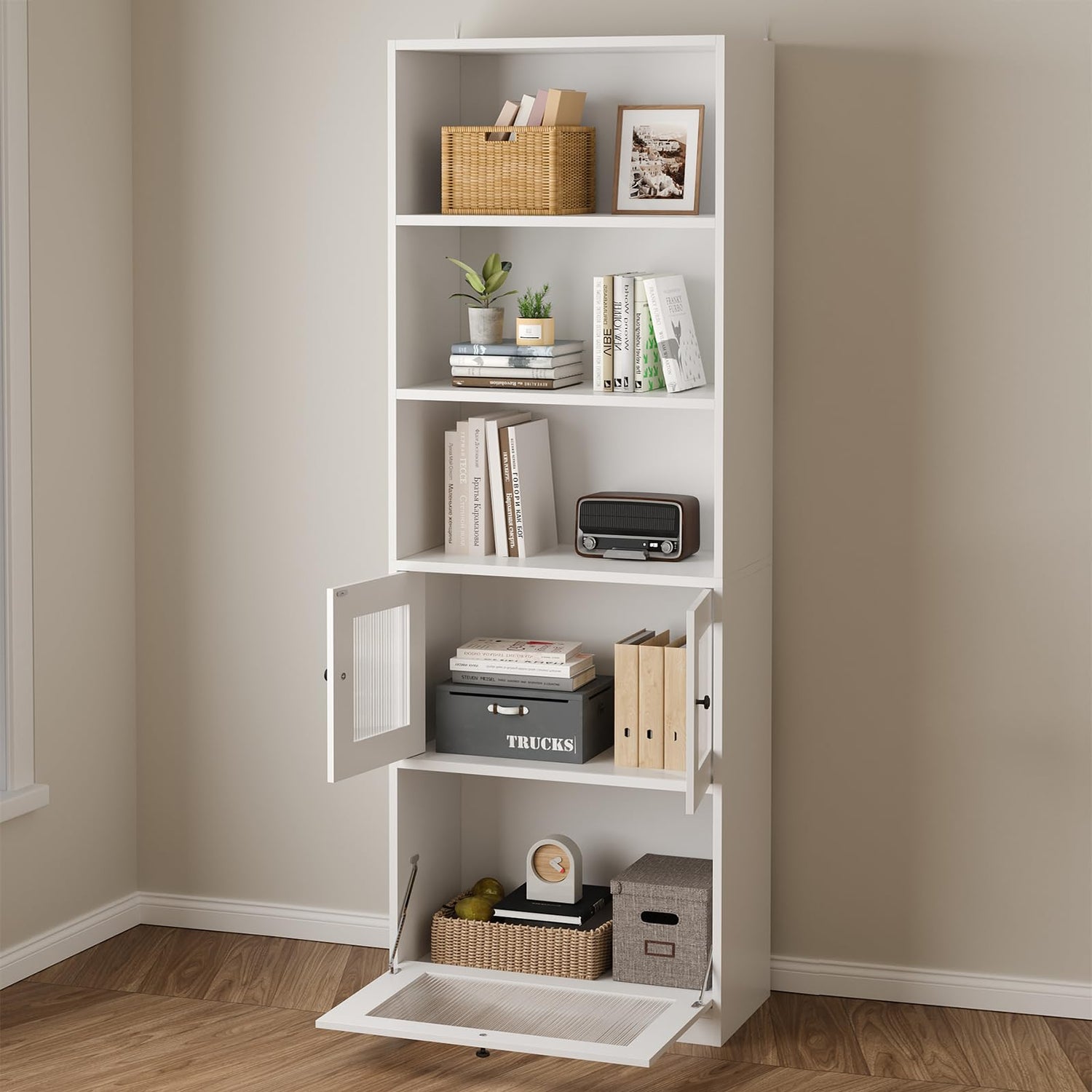 • Modern White bookcase: The combination of open shelves and transparent acrylic glass doors adds a touch of elegance and modernity to your room, making it match better with your home decor such as Home Office, Living Room, Bed Room