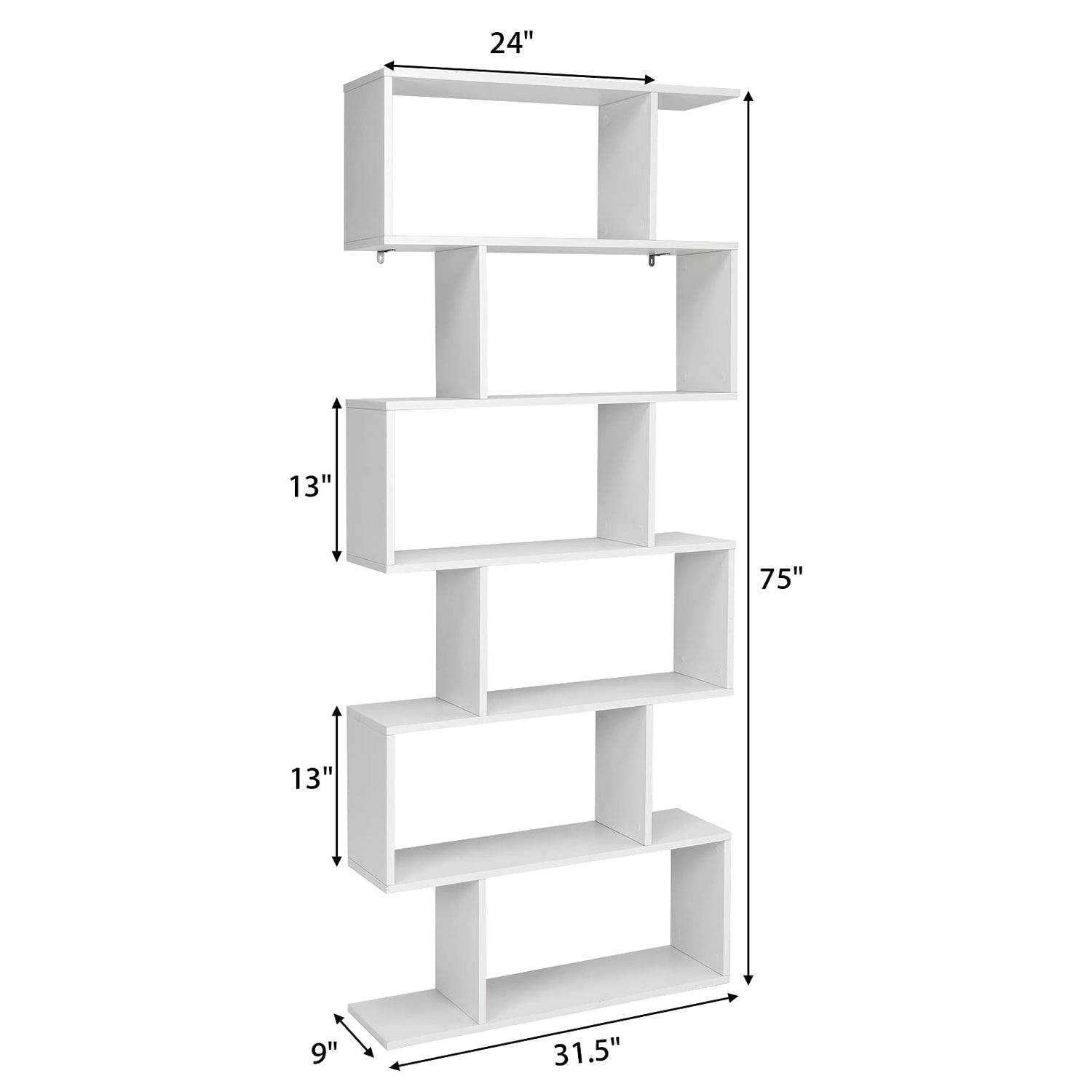 Tangkula 6-Tier Geometric Bookcase, Modern S-Shaped Storage Display Bookshelf for Living Room, Anti-Toppling Device, Home Office Wooden 6 Shelf Open Bookcase (2, White) is backordered and will ship as soon as it is back in stock.