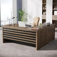 - Â This expansive computer desk is more than just functional - it's a statement piece. Devised by acclaimed designers, the black and light brown color scheme on the desktop creates an appealing contrast. The addition of a striped design on the baffle further enhances its aesthetic appeal, while the drawers of the mobile filing cabinet showcase a distinct color contrast.
