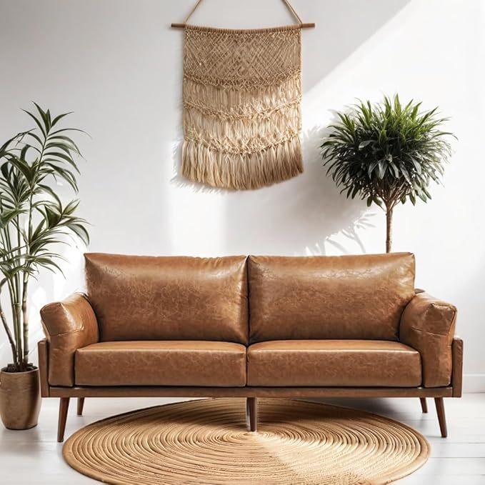 Black Upholstered Sofa, Faux Leather Sofa Couch, 72 Inch Black Couch for Living Room - 56‘’caramel is backordered and will ship as soon as it is back in stock.