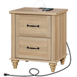 - This nightstand with a charging station is designed with two large drawers, perfect for storing books, glasses, and other personal items. It provides additional storage space, keeping your belongings organized and easy to access for everyday use. The drawer of the wooden side table with charging station is equipped with smooth metal slides and handles, making opening and closing effortless.