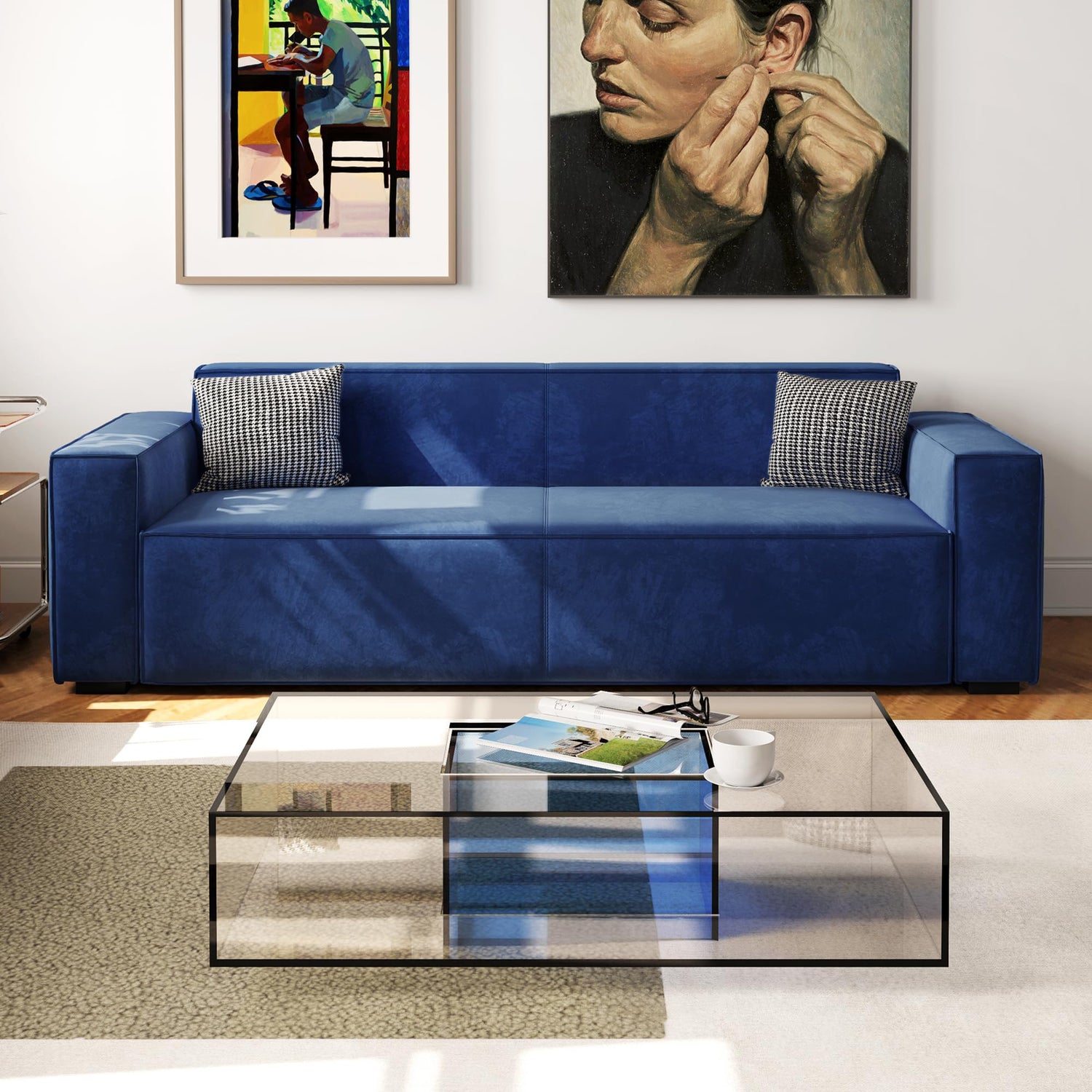 88.6" 3-Seater Modern Minimalist Sofa with Square Armrests, Oversized Seat Velvet Couch and 2 Pillows,
