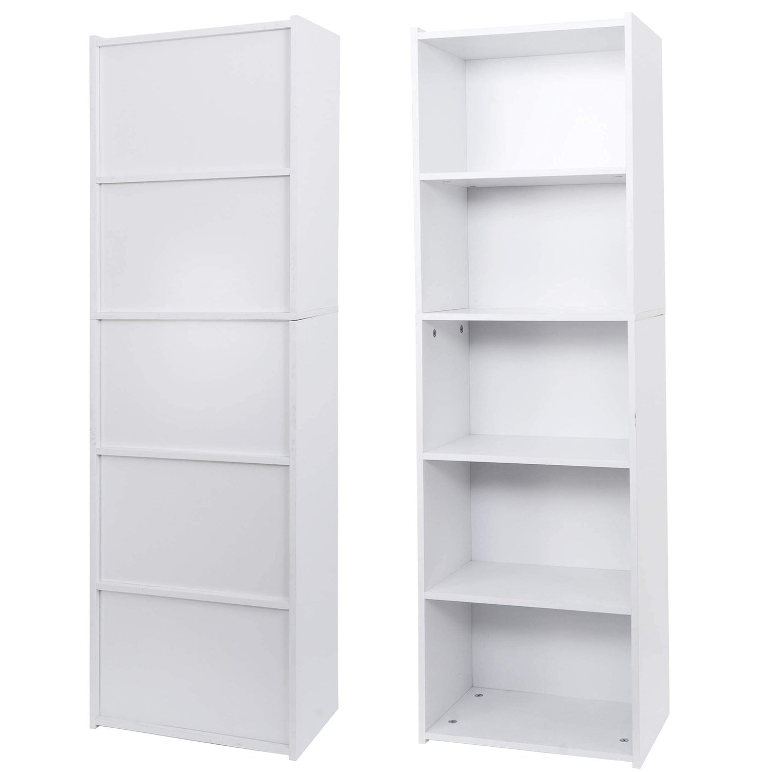 - ZENY 5-Tier bookcases are made of durable PB + MDF. Wood structure and stable base make the bookcase very stable to use. And each shelf can holds up to 22lbs