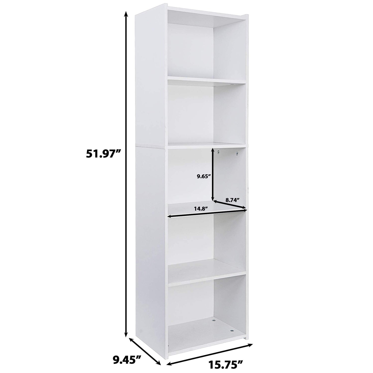 - This bookcase overall size is 15.75" × 9.5" × 51.97"(L×W×H), which provides large capacity and space saving features with its 5-tier open shelves design, is an easy way to collect and display your favorite book, photo frame, ancient ornaments or plants
