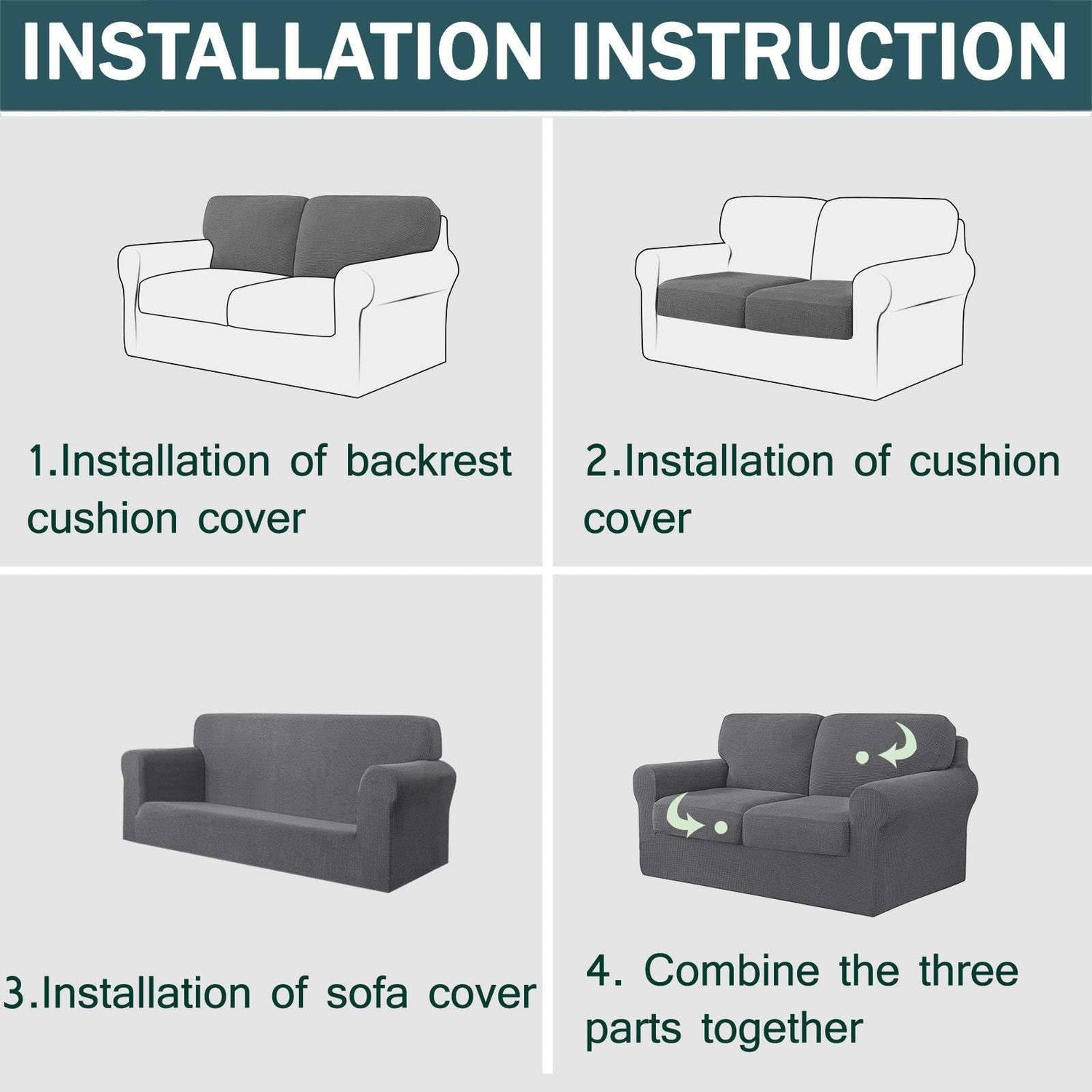 - Easy To Install & Maintain: Our fitted sofa cover can cover the all of your sofa, offer 360° all aspects coverage for your sofa and cushions. Easy to install, our sofa covers and seat cushion covers have elastic bands, and the backrest covers have buckles and drawstrings. Hand or machine washable in cold water. The best choice for families with children and pets.