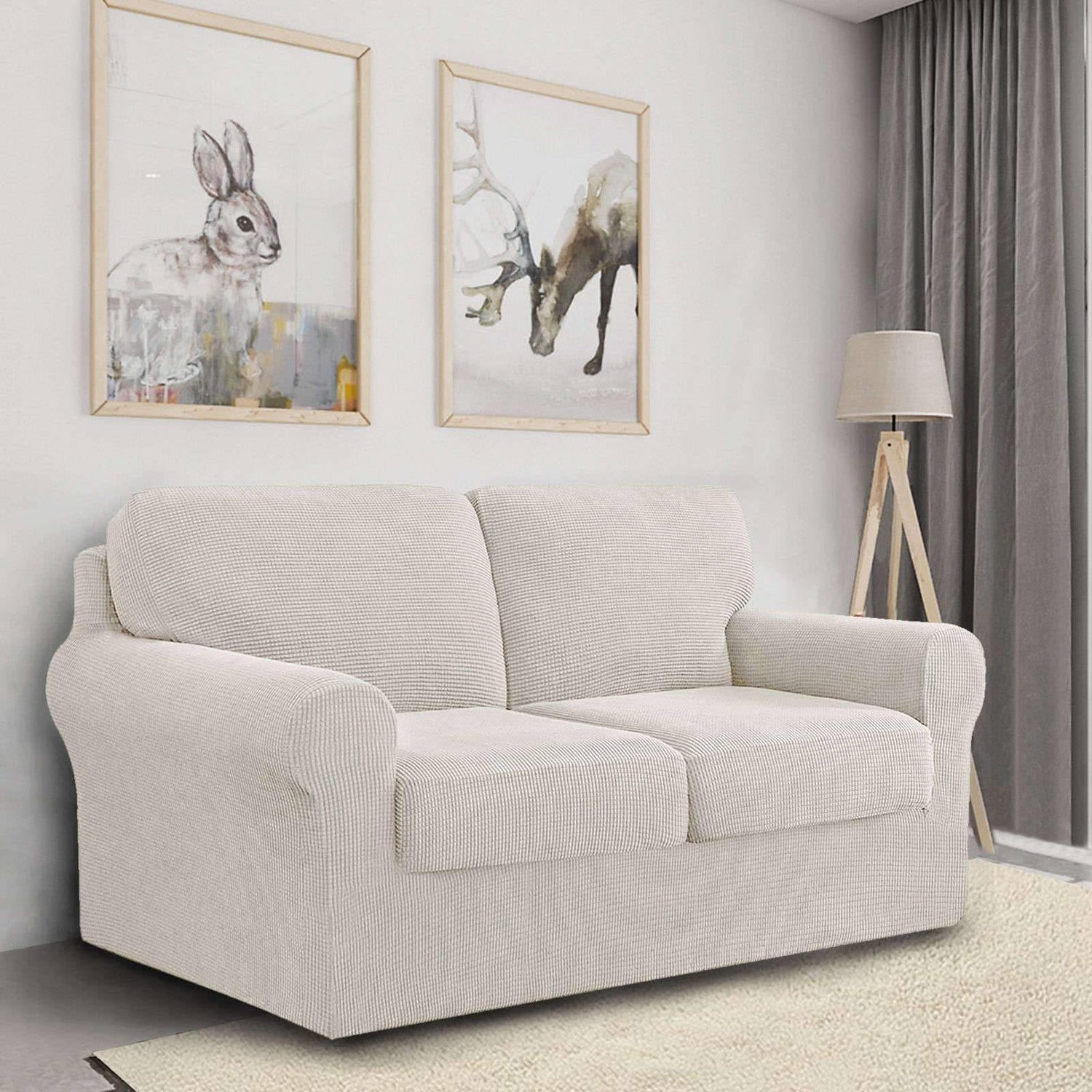 5 Piece Couch Cover for 2 Cushion Couch Loveseat Cover, Spandex Spandex Stretch Sofa Cover