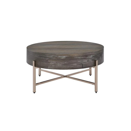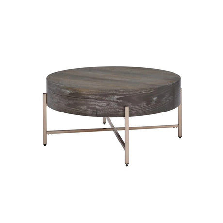 Weyton 1-Drawer Round Wooden Top Coffee Table in Light Brown and Champagne
