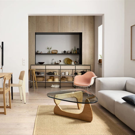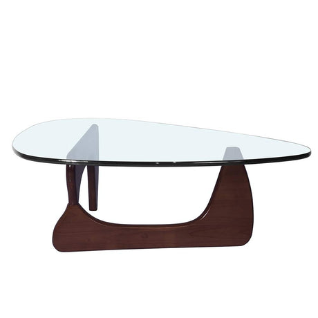 Noguchi Table Triangle Glass Coffee Table with Solid Wood Base