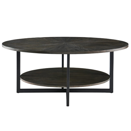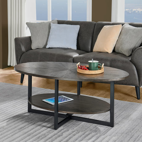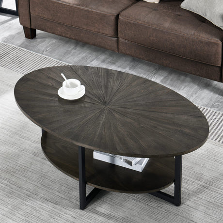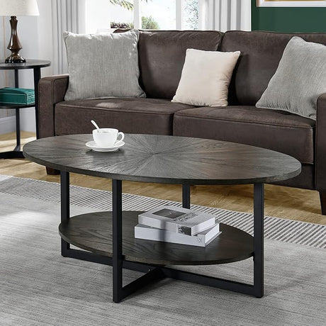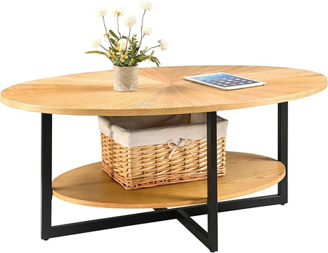 Oval Coffee Table with Storage Shelf, 43.3” Farmhouse Sofa Center Table