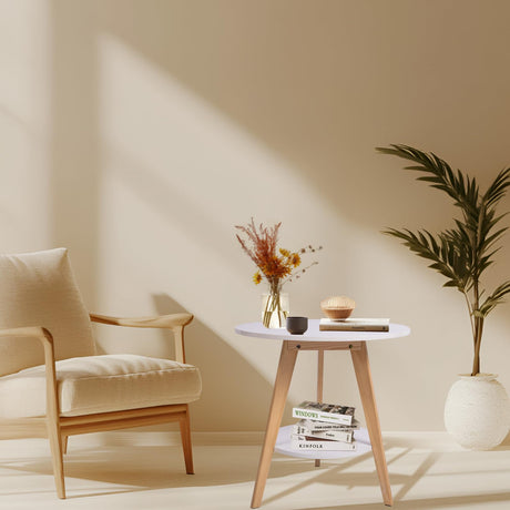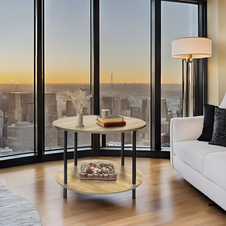 Round Wooden Coffee Table, 2-Tier Modern Minimalist Design